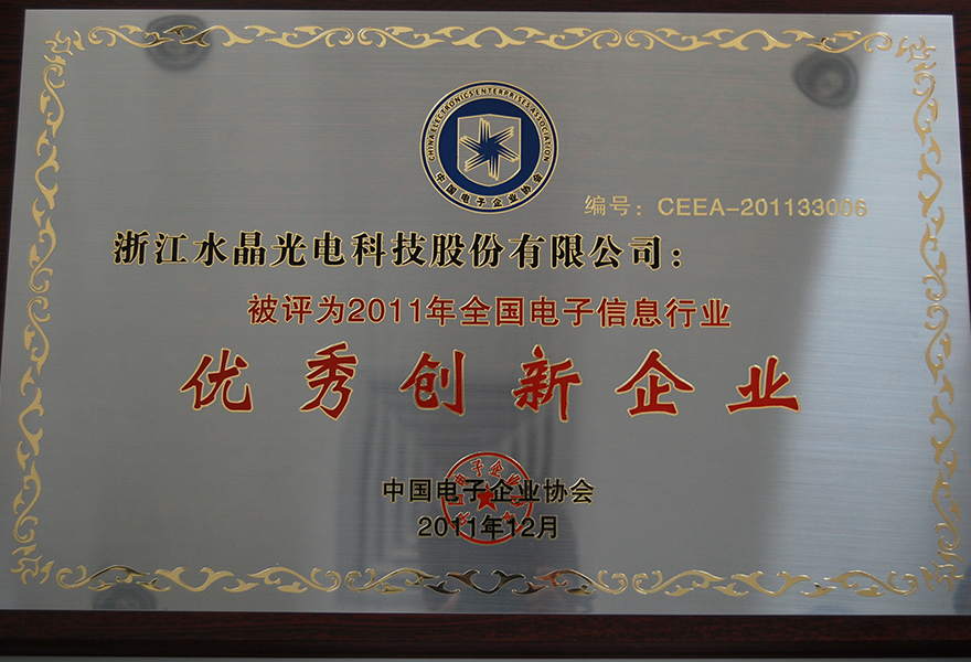 11.A-87 浙江水晶光电科技股份有限公司被评为2011年全国电子信息行业优秀创新企业201112