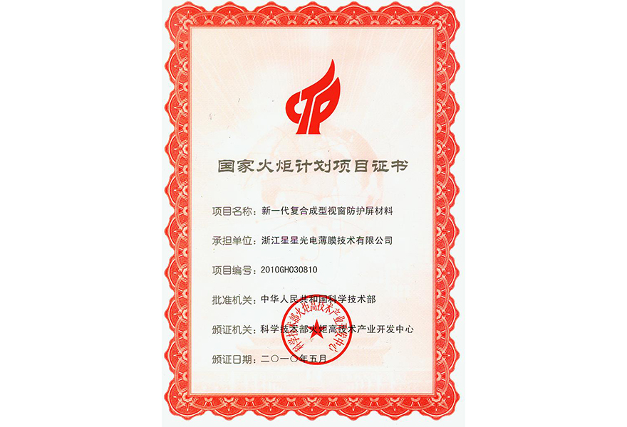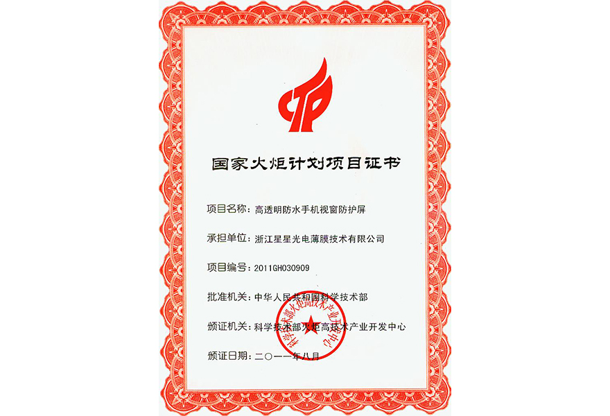 11.2.1-21国家火炬计划产业化示范项目证书201205