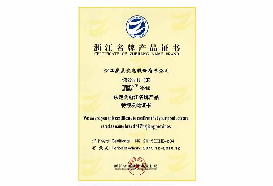 浙江名牌产品证书