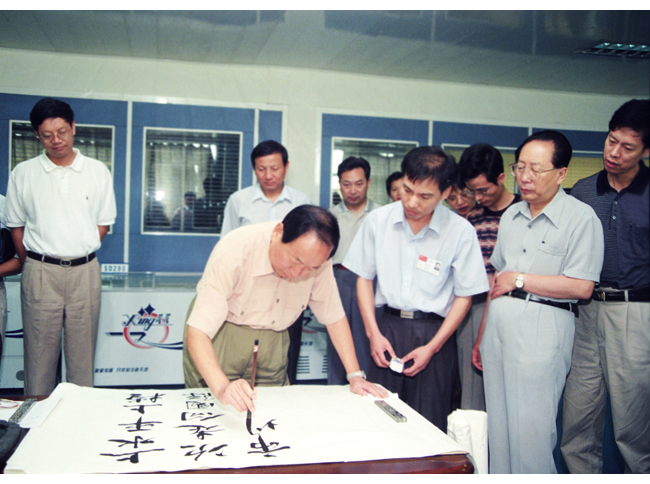 2000年9月6号全国人大副委员长田纪云视察德州扑克app 并为公司亲笔提字