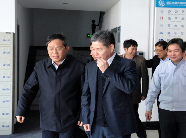 2013年2月16日,浙江省委副书记、省长李强(左一)莅临我集团水晶光电...