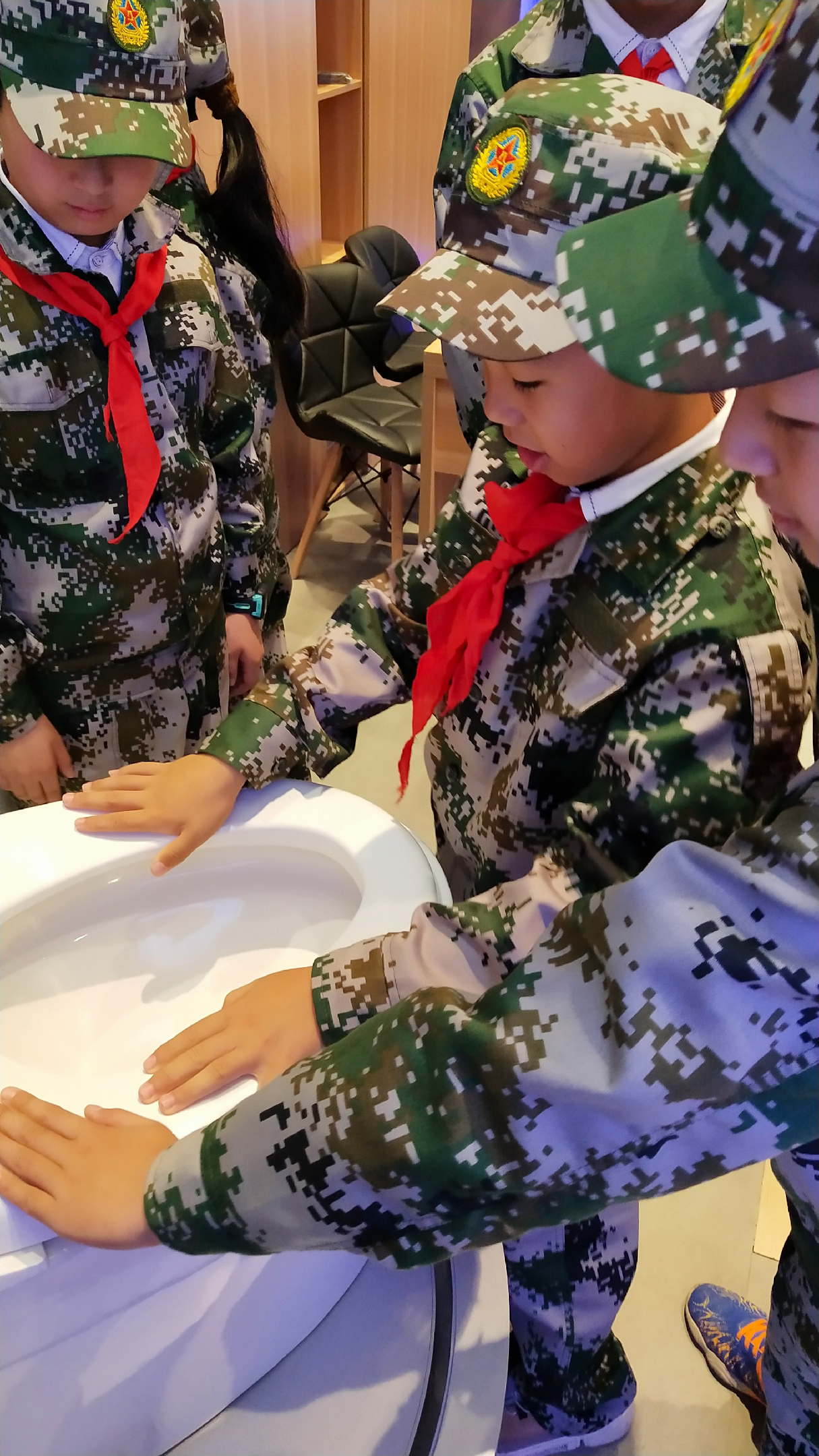 故事和体验触发了孩子们的好奇心与探索心,学生在参观过程中提出各种问题,比如:智能马桶如何节能节水,水资源如何保护;智能马桶的操作功能是否能实现屏投不要再依靠遥控器,遥控器太笨重了。