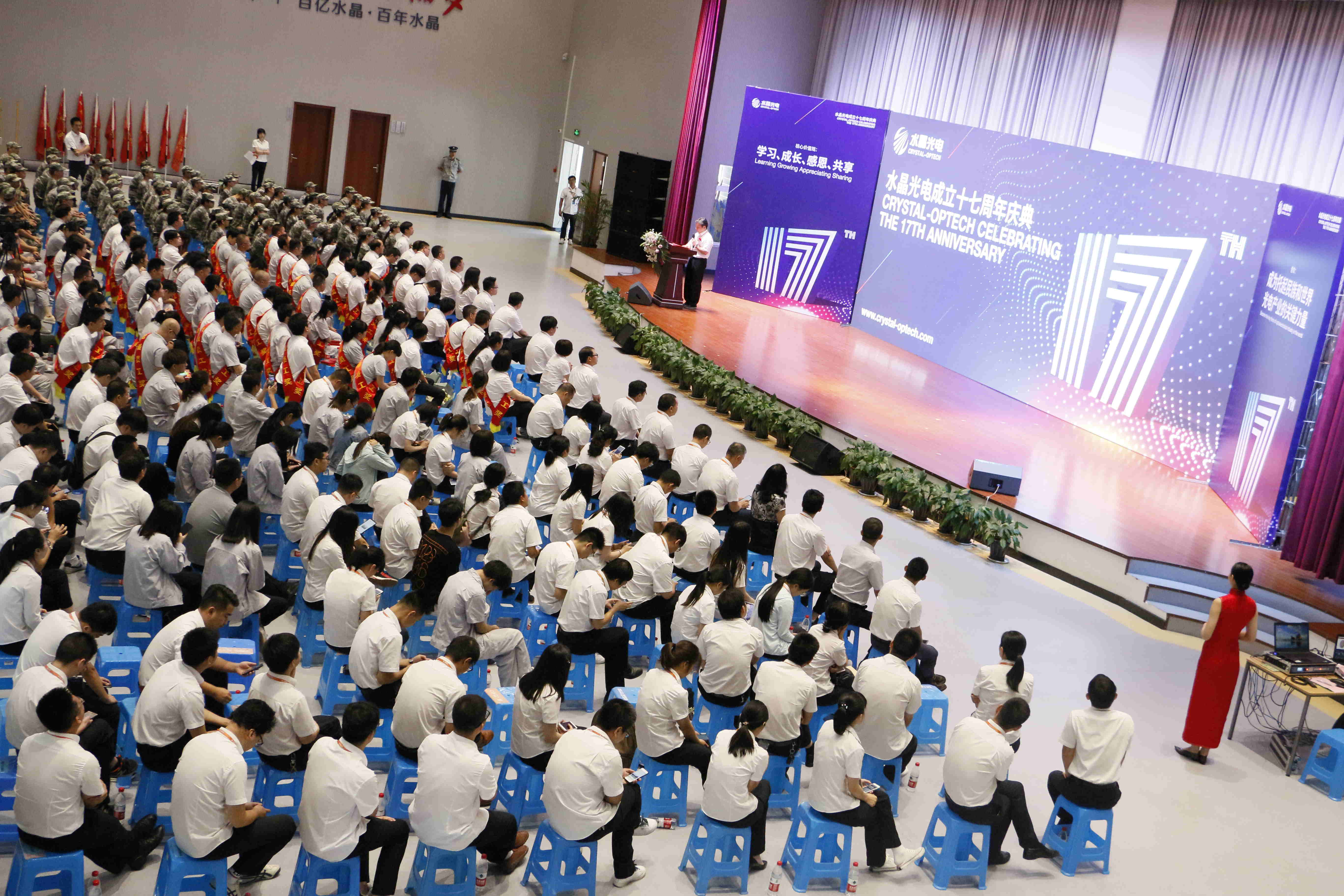 8月2日,公司在综合楼三楼举行了水晶光电成立十七周年庆典。公司董事长林敏,董事、总经理王震宇等领导班子以及公司各职能中心和事业部、分子公司的领导和员工代表参加了此次活动。董事会办公室主任、水晶商学院执行院长印锋主持大会。