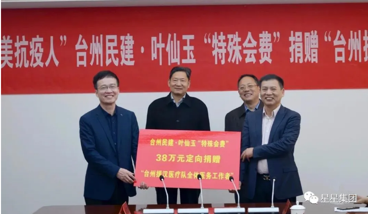 3月25日上午,民建台州市委会在台州市同心之家举行致敬“最美抗疫人”台州民建·叶仙玉“特殊会费”定向捐赠台州援鄂医疗队活动仪式。市人大常委会副主任、民建台州市委会主委赵跃进,市委统战部常务副部长徐友根,市慈善总会驻会副会长毛太宁,德州扑克app