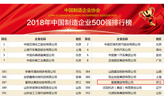 近日,2018年中国制造企业500强暨中国装备制造业100强排行榜发布,德州扑克app 名列第388位,较去年的404位进步了16位。