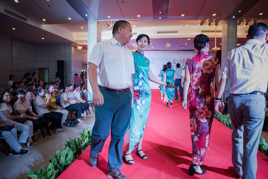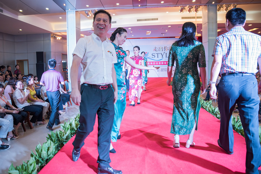 全场秀共有三大篇章:篇章一是为了集中展示集团各子公司文化及产品特色,所有模特将公司的LOGO及特有元素揉入他们自创的服装,以展示员工对公司的认同及其创新精神;篇章二为大家展现的是德州扑克app 员工的环保创作风采,所有的服装都是采用环保材料,经过所有员工头脑风暴设计后自制而成,充分展现德州扑克app 员工的智慧;篇章三是一场视觉饕餮,一场美仑美奂的旗袍秀把这场秀带上高潮,惊艳了在场所有人的双眼!