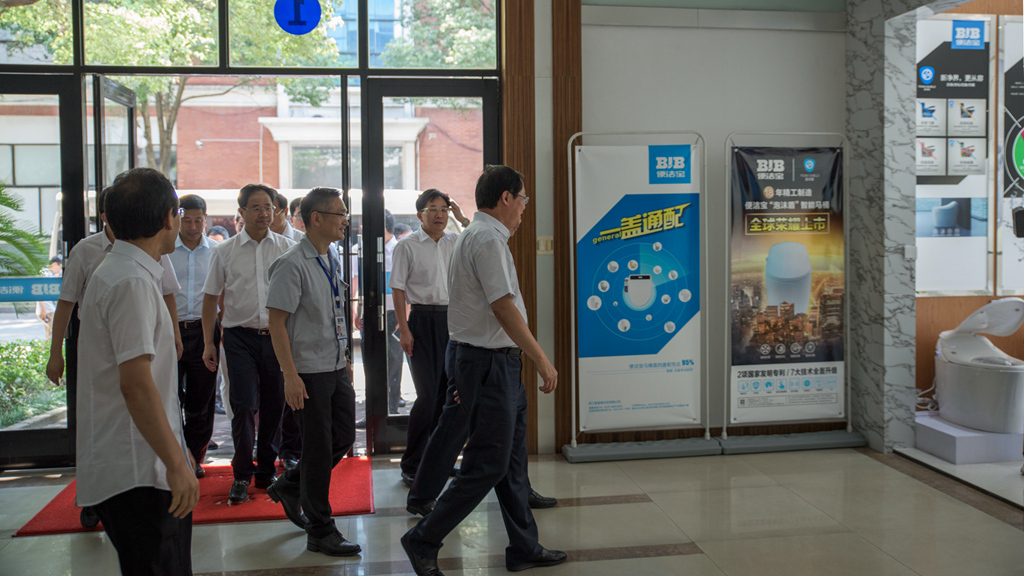 在产品展示厅,叶仙玉总裁向车省长详细讲解了便洁宝的历史渊源、当前的生产经营、销售现状及互联网时代产品如何与大数据信息技术结合等情况,并亲自演示了产品的最新功能状况。他说:“这个产业,我做了18年,亏了17年!好在没有放弃,因为始终相信它的市场潜力。”车省长非常认同叶仙玉总裁作为一名优秀民营企业家的战略眼光,对他坚守实业的毅力表示了极大的肯定,并指出智能卫浴不仅城市乡村都需要,市场广阔,同时也迎合国家不断提升人民卫生水平、满足人民群众健康需求的精神。他指示台州市委班子领导要加快区域产业规模化的推进步伐,增强产业的集群效应与辐射能力。